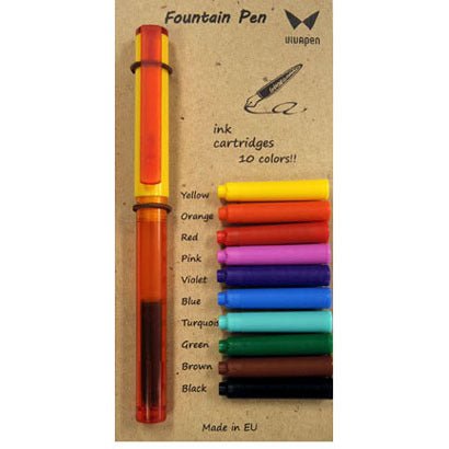 お手軽な価格で、インクカラーを楽しむ万年筆としてご使用いただけます。※インクはイエロー、オレンジ、レッド、ピンク、バイオレット、ブルー、ターコイズ、グリーン、ブラウン、ブラックの10色セットとなります。